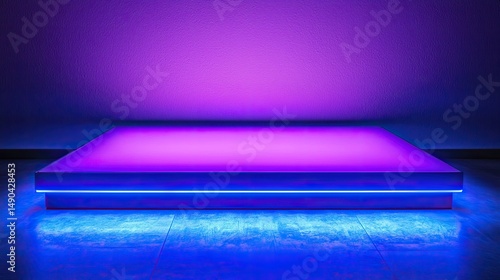 The watermark will not be included on Wall mural.: Illuminated platform with purple and blue neon lights, creating a vibrant and modern display -