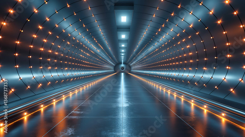 Wall mural illuminated tunnel blue and orange lights, futuristic abstract design for sci-fi backgrounds