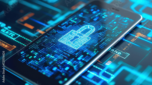 Wall mural illustrating advanced technology in data privacy, the smartphone is safeguarded with encryption and  - Wall murals Wall mural illustrating advanced technology in data privacy, the smartphone is safeguarded with encryption and - Wall murals