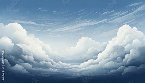 Wall mural : Illustration of a cloudy sky with a thin mist floating in the air -