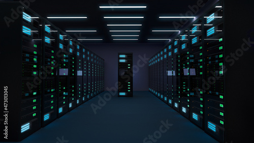 Wall mural : Illustration of a data center with servers turned on - artificial intelligence - internet - computer - n