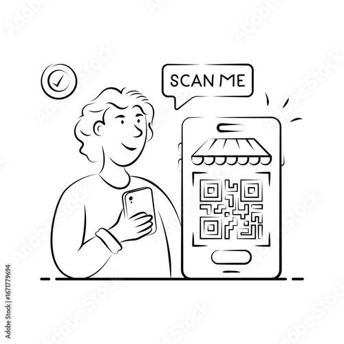Wall mural : Illustration of a person using a smartphone to scan a qr code