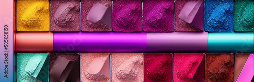 Illustration of an array of colorful eyeshadows in a makeup palette created with generative ai technWall mural