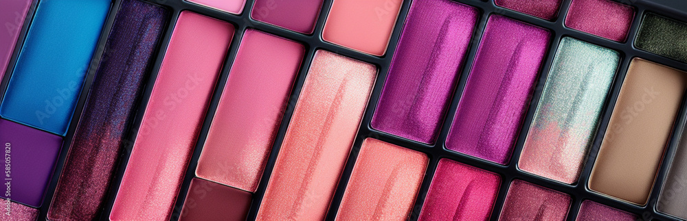 Illustration of an array of colorful eyeshadows in a makeup palette created with generative ai technWall mural