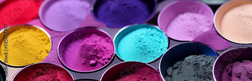 Illustration of an array of colorful eyeshadows in a makeup palette created with generative ai technWall mural