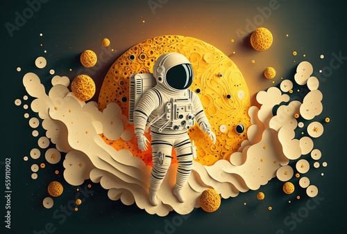 The watermark will not be included on Wall mural.: Illustration of an astronaut with universe background