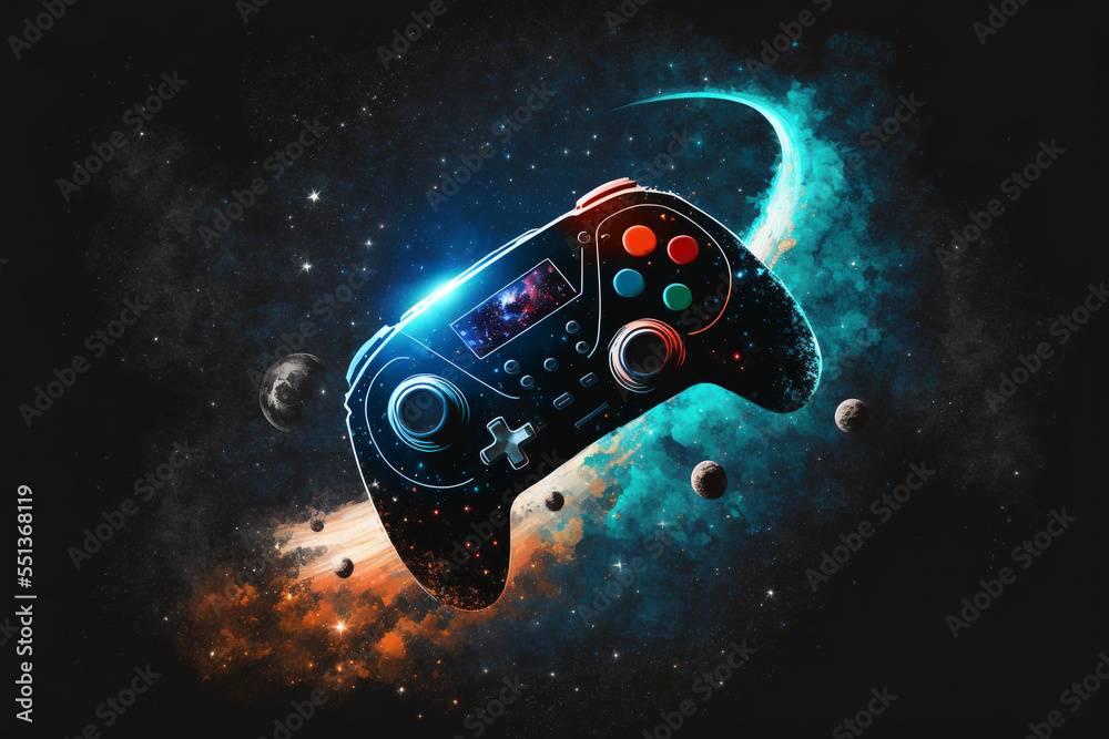 Wall mural illustration of game controller with universe background - Wall murals Wall mural illustration of game controller with universe background - Wall murals