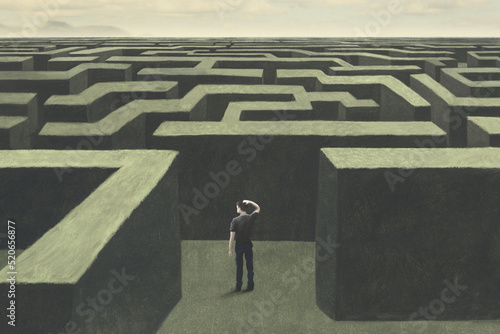 Wall mural : Illustration of man lost in a complex labyrinth, surreal abstract concept