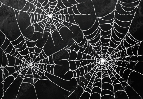 The watermark will not be included on Wall mural.: Illustration of spider webs on a black background generative ai
