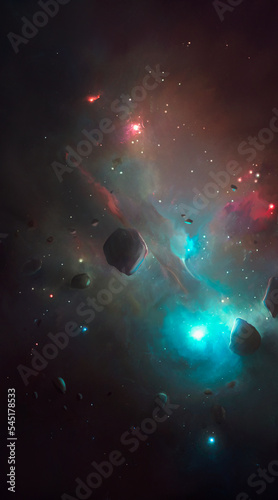 The watermark will not be included on Wall mural.: Illustration of the space space of asteroid against the backdrop of stars and nebulae