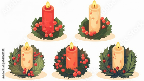 The watermark will not be included on Wall mural.: Illustration set of different advent wreath with burning candles