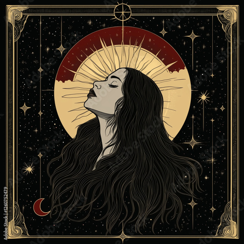 The watermark will not be included on Wall mural.: Illustration set of moon phases - different stages of moonlight activity in vintage engraving style -