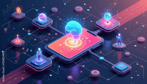 Wall mural : Illustration shows app modernization concept with ai tech evolution - smartphone connects to digital