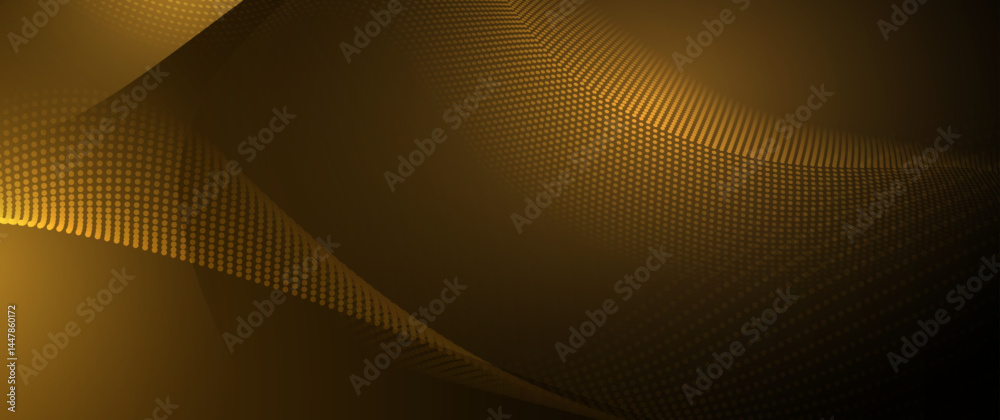 Wall mural illustration vector abstract wave, flow line, motion pattern and particle dot on gold color backgrou