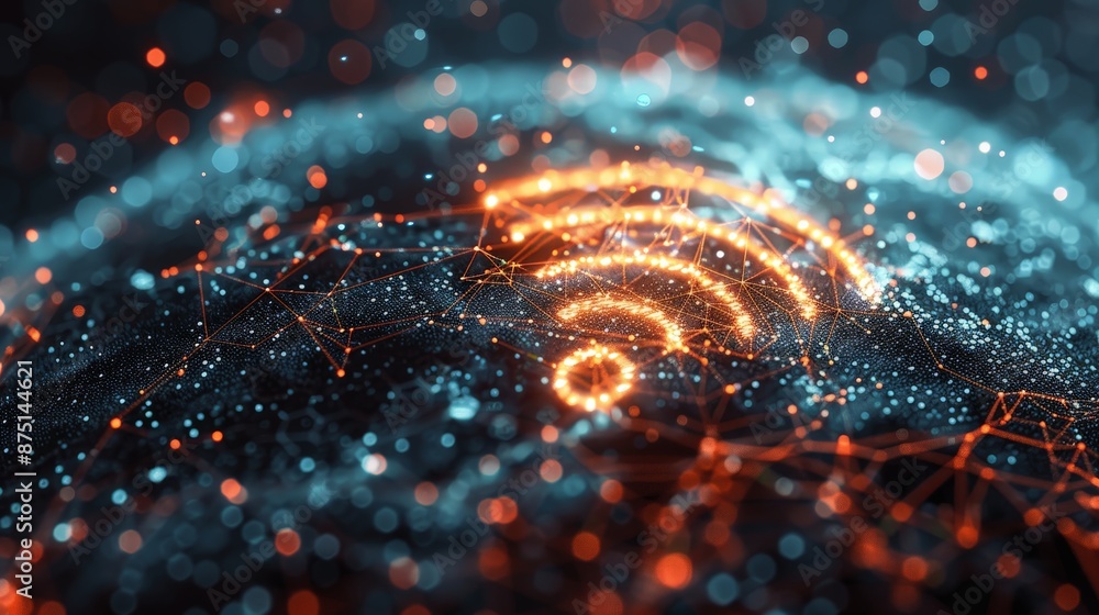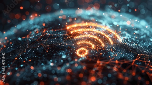 The watermark will not be included on Wall mural.: Illustrations wireless network and connection abstract data background