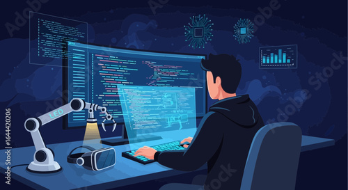 Wall mural : Illustrative depiction of a software developer working on a complex code project