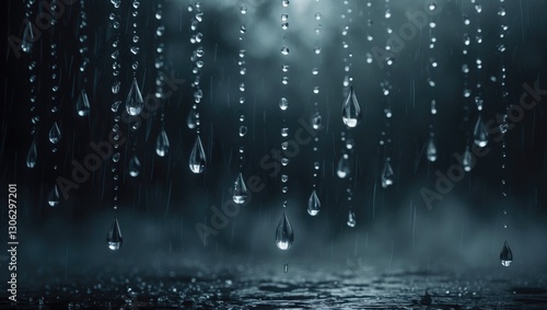 Wall mural image depicting a downpour against a dark backdrop. featuring lifelike raindrops in various light an - Wall murals Wall mural image depicting a downpour against a dark backdrop. featuring lifelike raindrops in various light an - Wall murals