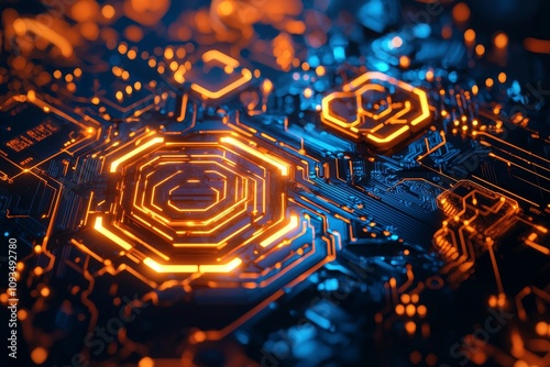 The watermark will not be included on Wall mural.: Image of abstract hexagon pattern with glowing lights