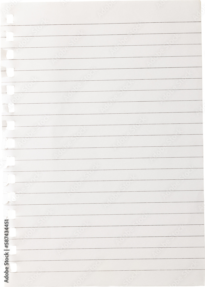 Wall mural image of close up of ruled sheet of paper with copy space on transparent background - Wall murals Wall mural image of close up of ruled sheet of paper with copy space on transparent background - Wall murals