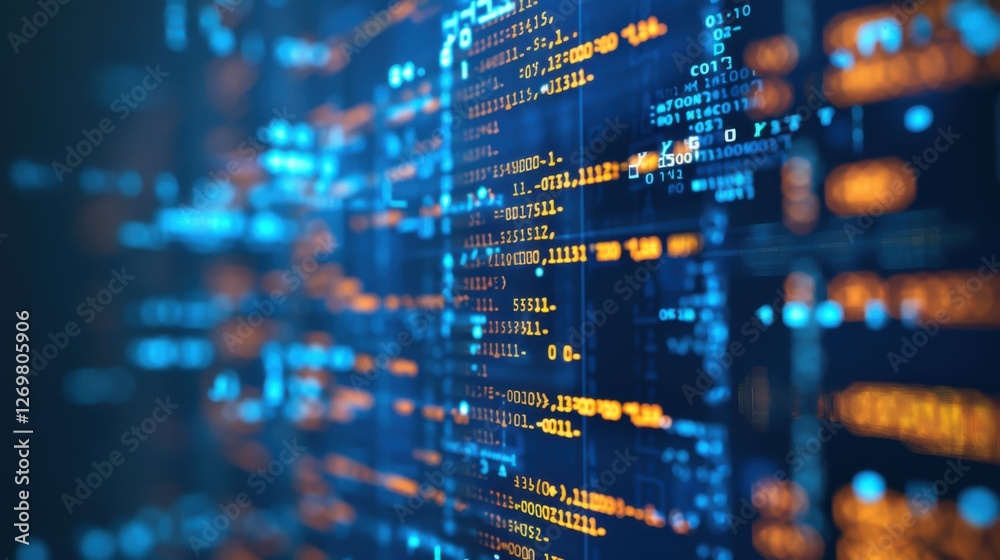 The watermark will not be included on Wall mural.: Image of computer code on blue background