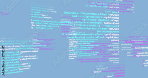 The watermark will not be included on Wall mural.: Image of computer language moving on blue background