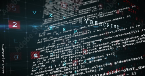 Wall mural image of cyber security data processing and light spot against black background - Wall murals Wall mural image of cyber security data processing and light spot against black background - Wall murals