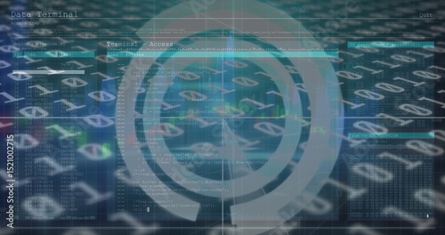Wall mural image of data processing and circles on black background - Wall murals Wall mural image of data processing and circles on black background - Wall murals