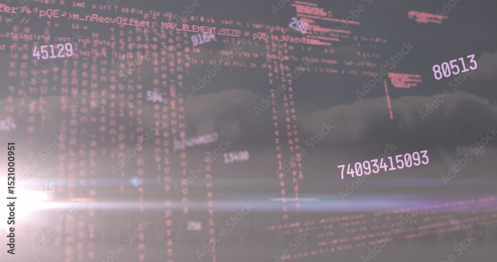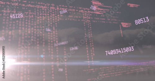 The watermark will not be included on Wall mural.: Image of data processing and numbers over space with lights