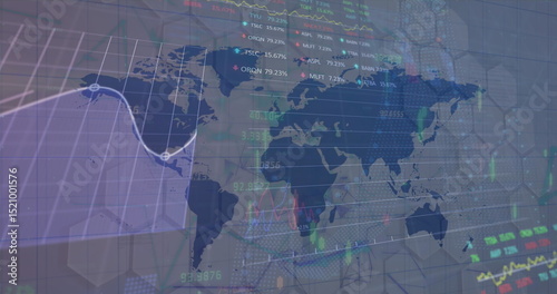 The watermark will not be included on Wall mural.: Image of data processing over world map