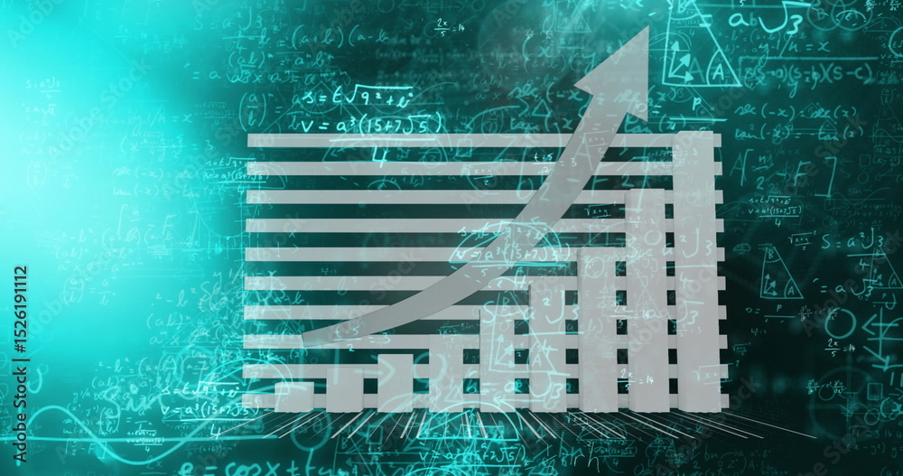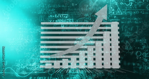 The watermark will not be included on Wall mural.: Image of data processing with mathematical equations on black background