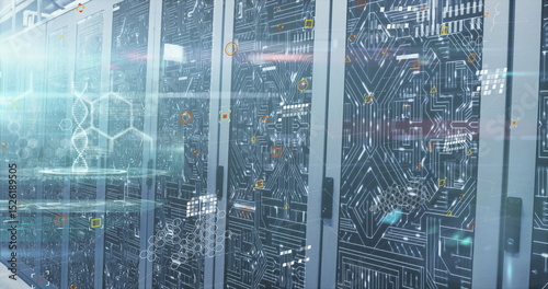Wall mural image of dna strand and data processing over computer servers - Wall murals Wall mural image of dna strand and data processing over computer servers - Wall murals