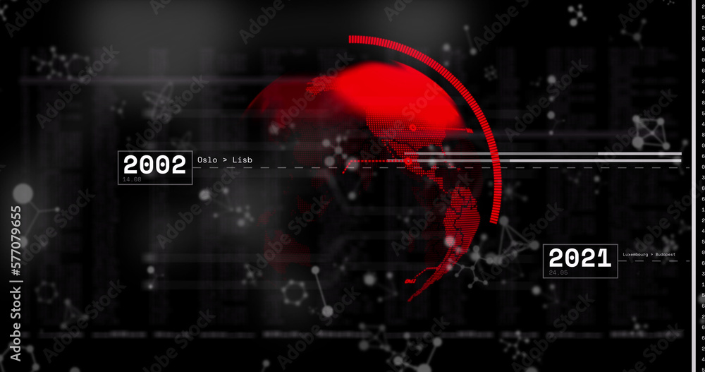 Wall mural : Image of globe and data processing on black background