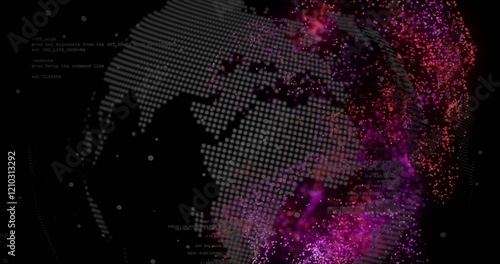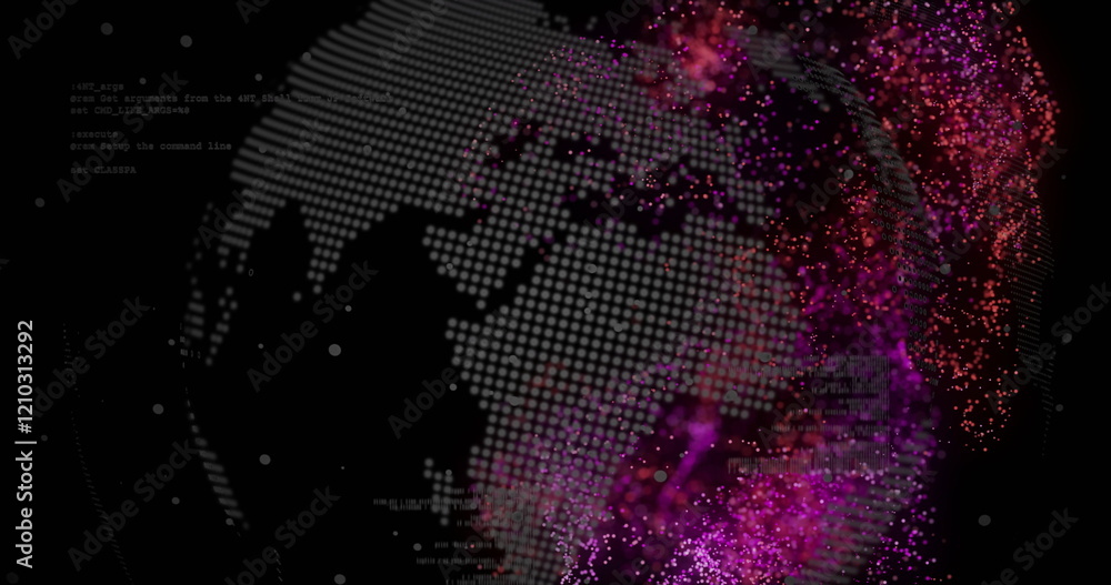 The watermark will not be included on Wall mural.: Image of globe with data processing over light spots on black background