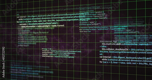 Wall mural : Image of grid pattern and computer language over black background