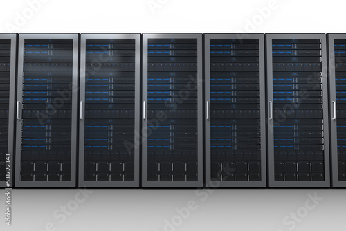 Wall mural image of row of computer servers with blue lights on - Wall murals Wall mural image of row of computer servers with blue lights on - Wall murals