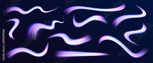 The watermark will not be included on Wall mural.: Image of speed motion on the road - abstract comet of light in galaxy - background in blue and purple
