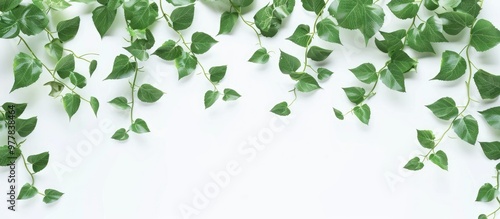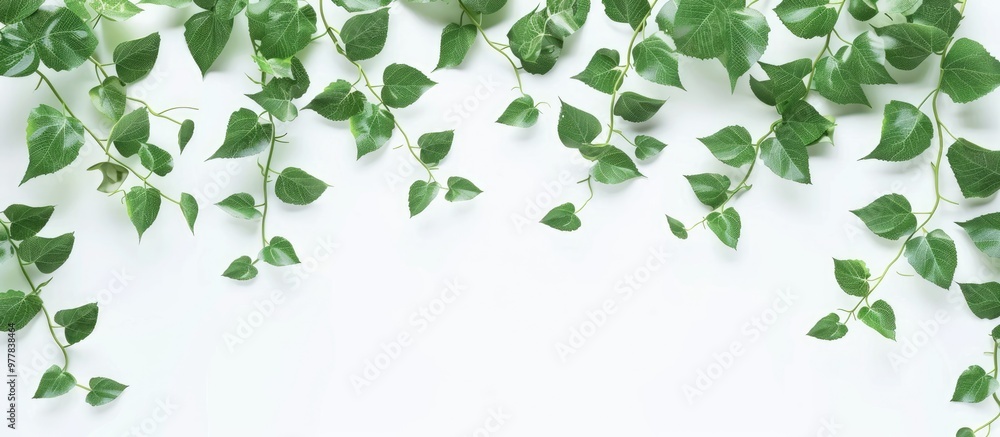 Wall mural images of green leaves set against a white background. copy space image. place for adding text and d