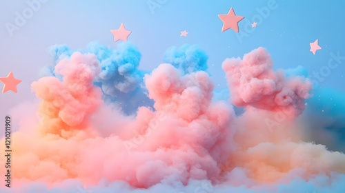 Wall mural imaginative and whimsical pastel clouds and stars with soft fluffy textures create a captivating and - Wall murals Wall mural imaginative and whimsical pastel clouds and stars with soft fluffy textures create a captivating and - Wall murals