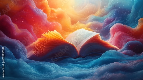 Imaginative concept for world book day with an abstract open book blending with colorful waves and dWall mural