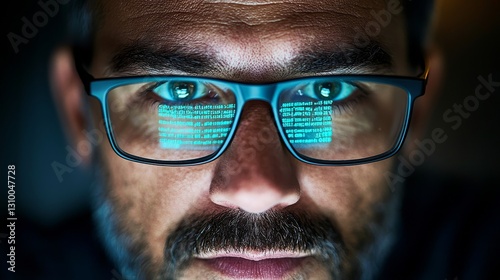 Wall mural in a data center technical system control room, a skilled male it programmer works on a desktop comp - Wall murals Wall mural in a data center technical system control room, a skilled male it programmer works on a desktop comp - Wall murals