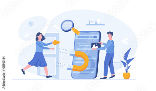 Wall mural inbound marketing. marketer attracts a clients with useful content adapted to user requests. vector