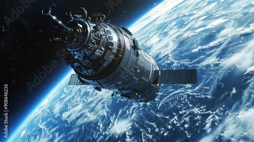 Wall mural incredible 3d rendering of a space station orbiting a planet with stunning digital imagery in good q - Wall murals Wall mural incredible 3d rendering of a space station orbiting a planet with stunning digital imagery in good q - Wall murals