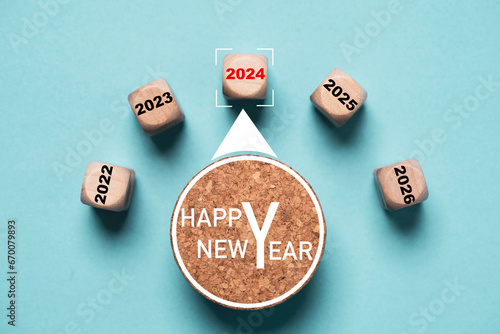 Indicator rating level print screen wooden cube block and point to 2024 year for preparation merry cWall mural
