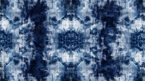 The watermark will not be included on Wall mural.: Indigo and grey shibori patterns, creating an abstract design with multiple layers for depth - the ba