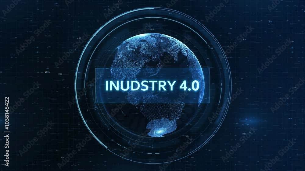Industry 4 - 0 concept: futuristic globe with grid, binary code, and digital animationWall mural
