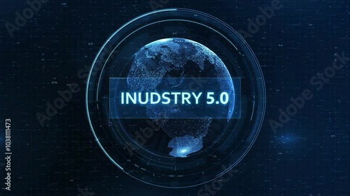 Wall mural : Industry 5 - 0 concept: futuristic globe with grid, binary code, and digital animation