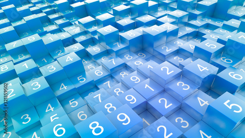 Wall mural : Infinite random numbers abstract background, original 3d rendering illustration