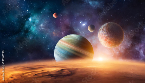 Wall mural infinite universe with stars and galaxies. sci-fi landscape with planets. open space.