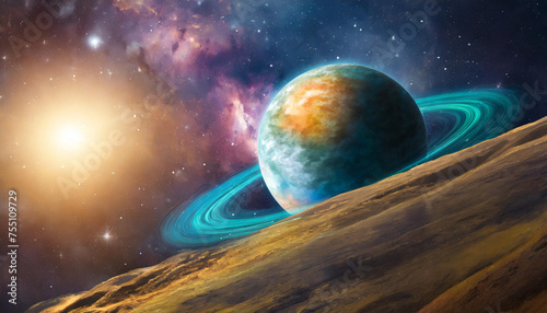 Wall mural infinite universe with stars and galaxies. sci-fi landscape with planets. open space.