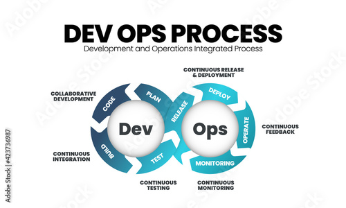 The watermark will not be included on Wall mural.: Infinity vector infographic presentation template in devops concept is combining software developmen